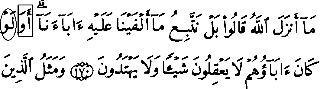Page #62: -In line #2 the ‘original’ of Q2:170 has waw but the modern version has added lam. -In line #8 a word in the ‘original’ of Q2:171 is quite different from that in the modern version. -In line #9 the word in the ‘original’ is without the consonant nun which is inserted in the modern version of Q2:172.