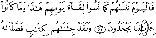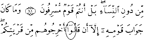 -In line #3 the ‘original’ of Q7:27 has the letters mim and nun, which are not in the modern Arabic version.
