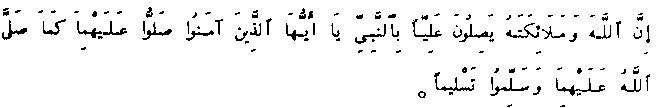 Verily, God and His angels send benediction on the Prophet. O ye who believe! pray for him and salute him with a salutation.